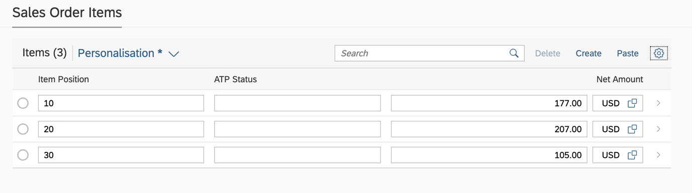 The paste function in a smart table is also available if the smart table contains an inline action.