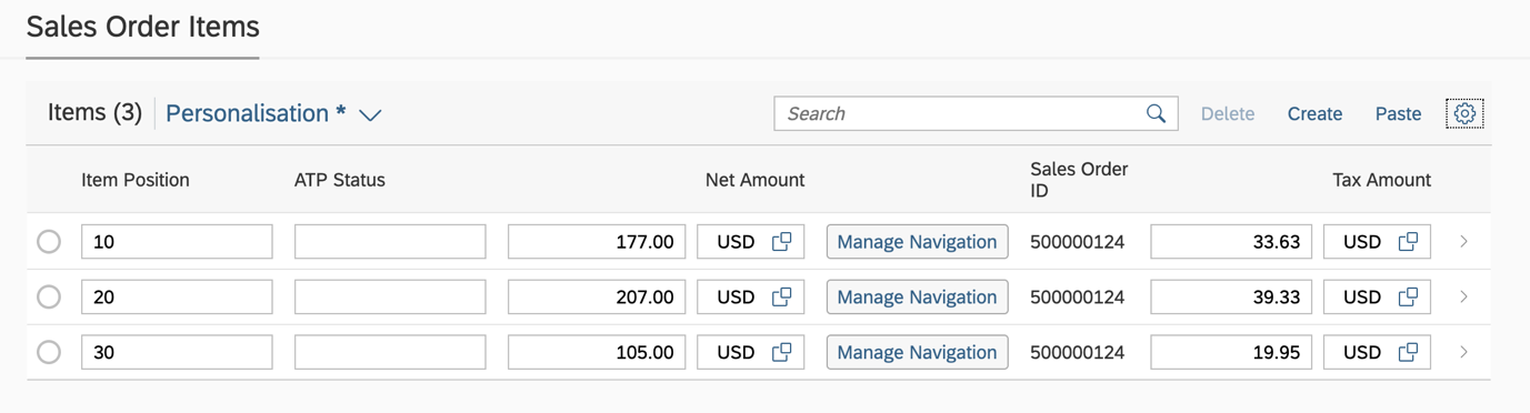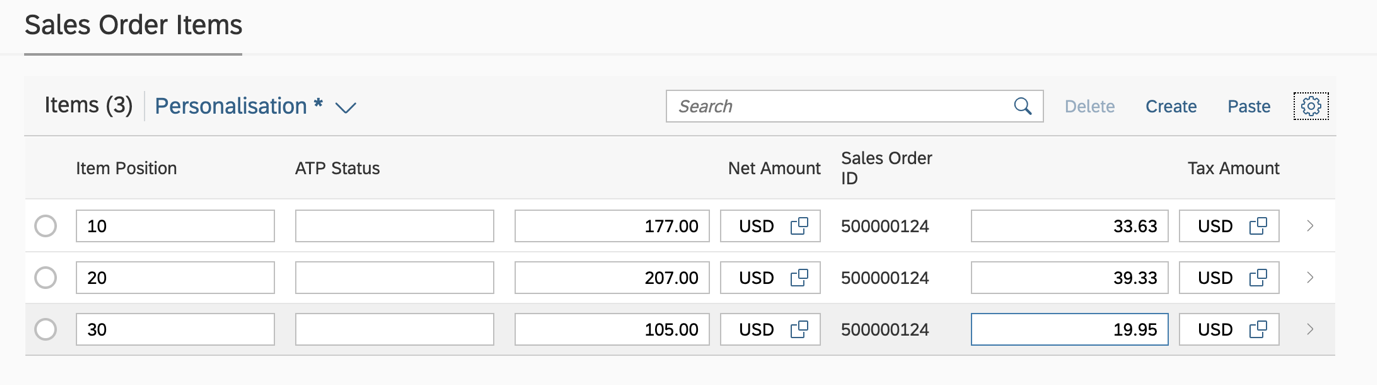A Paste button is shown in the table toolbar. Once the user has copied data from Microsoft Excel, the focus can be anywhere in the table except for the cells. The user needs to trigger the browser paste ( CTRL V for Microsoft Windows, CMD V for macOS). The paste function in a smart table is available for these scenarios: