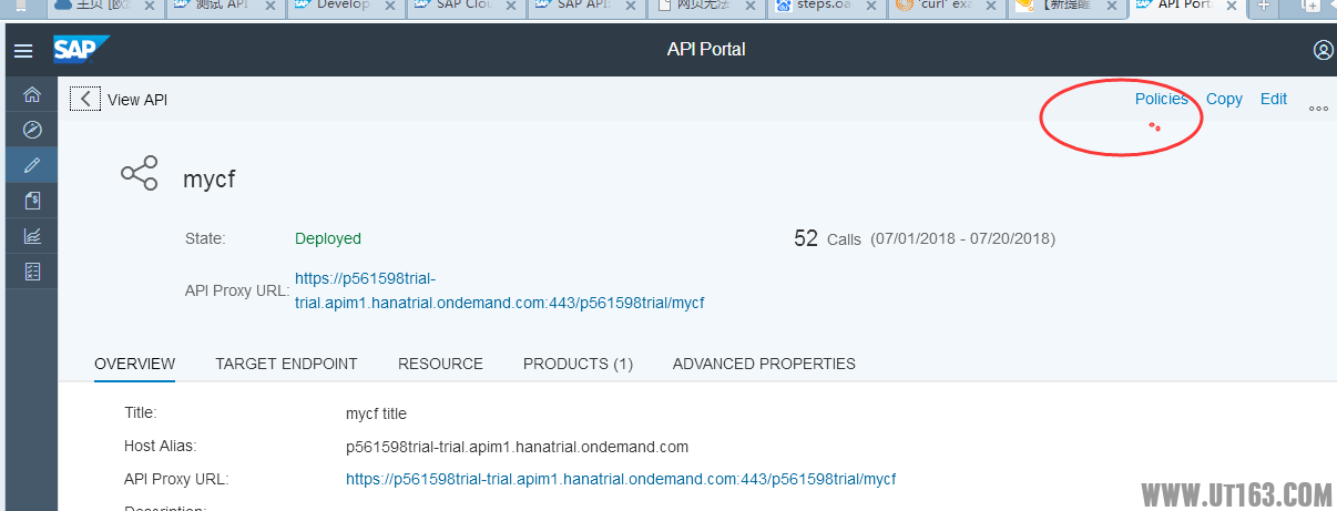 4.最后打开第1步中创建的API进行修改。并点击Policies进行策略编辑。