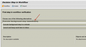 6. Double click the work item in the Inbox and after that you will be seeing this screen. On this screen click on “Execute background step immediately“.