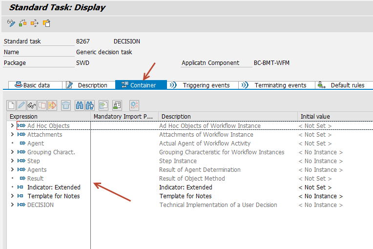 2. Task Container : Task container can found at Task. These container elements are local and only visible inside the task. you can display any task using tcode PFTC_DIS.