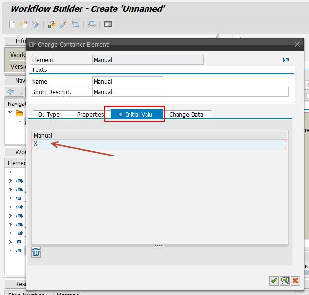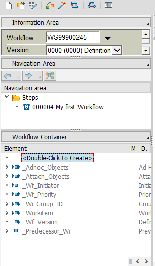 To create an element in the container double click “<Double Click to Create>“.You can also find some default elements available in workflow container like _WF_INITIATOR, _WF_PRIORITY etc..