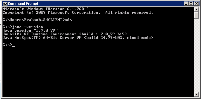 9. To test the JDK installation, open your windows command prompt and type “java -version” you should the version details like below