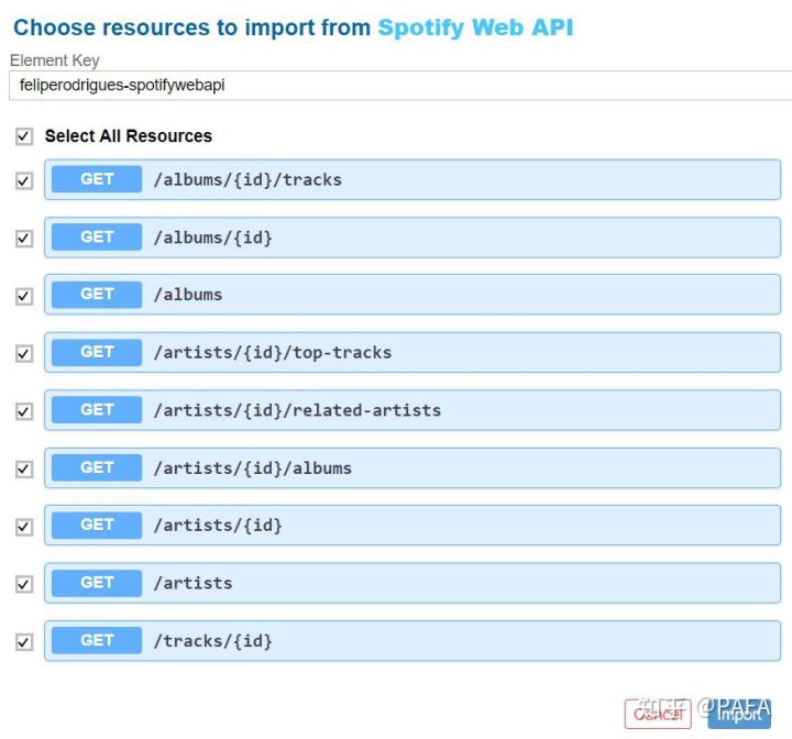 选择所有资源,输入Element Key,接着单击Import以关闭引导。