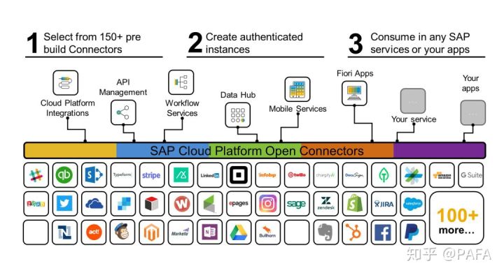 Open Connectors是简化和加速SAP和第三方解决方案之间集成的绝佳选择,可用的预构建连接器列表很广泛: Slack,LinkedIn,Twitter,Google Drive,Facebook,Paypal等。