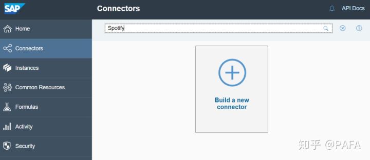 如果我们在“连接器”列表中搜索Spotify,我们找不到任何可用的连接器,只有“构建新连接器”选项。