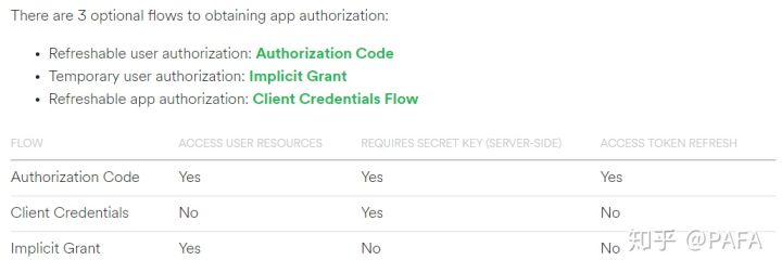 正如官方指南中所述,Spotify API有两种方法可以进行身份 验证: