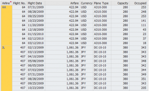 Output with SORTing applied on Airline field: